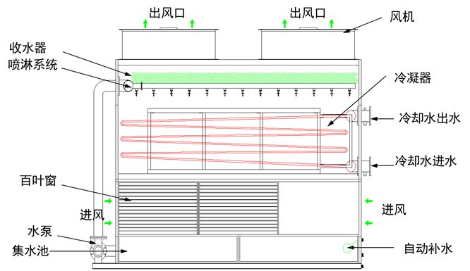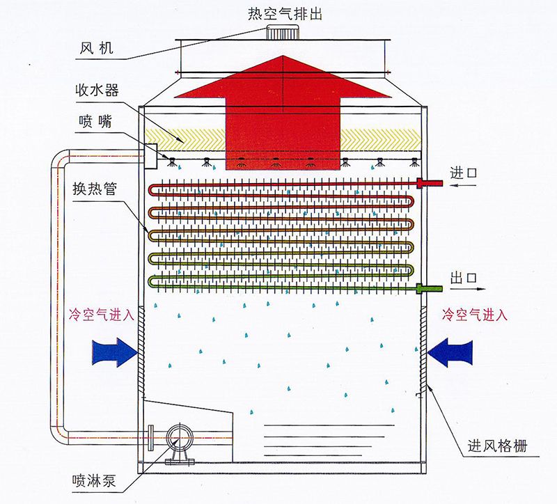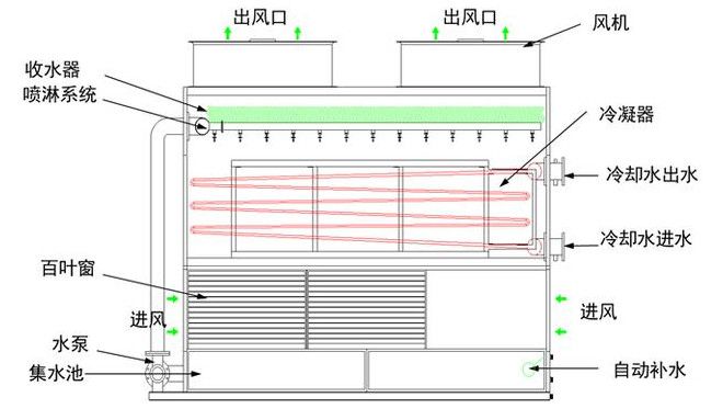 閉式冷卻塔內部結構圖和工作原理